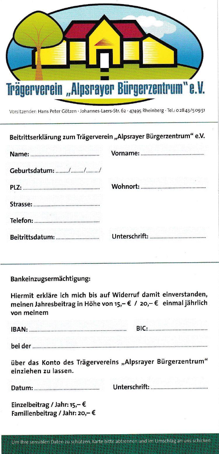 Trägerverein Alpsrayer Bürgerzentrum e.V 47495 Rheinberg - Alpsrayer Str.102-104